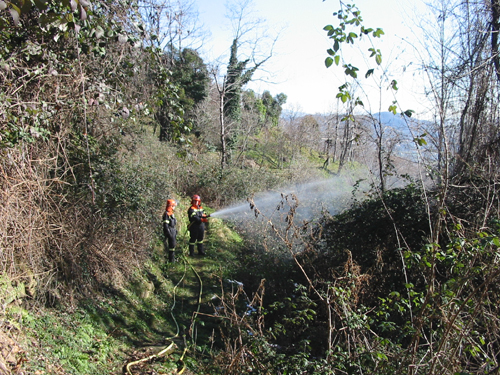 10. I volontari AIB dell'Alto Lario all'opera con la vasca autolivellante (foto di G.Zardoni)